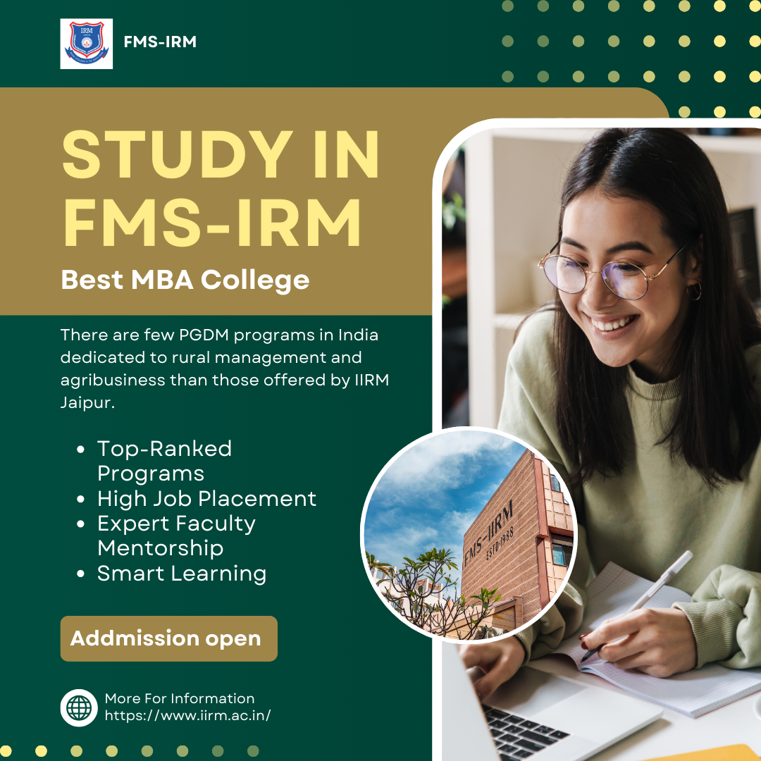 IIRM College Jaipur is widely recognised for its specialisation-driven MBA programmes, particularly in Rural Management and Agribusiness–areas with massive growth potential in India.