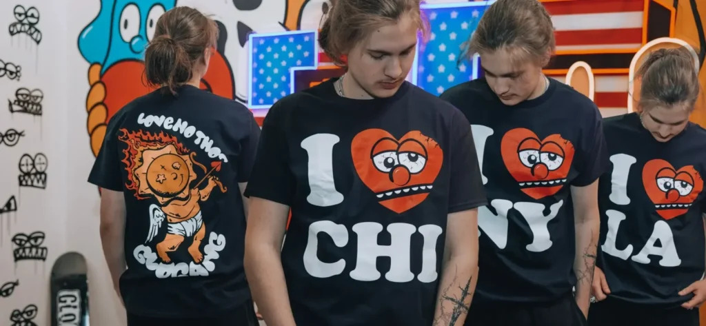 Oversized fits, graffiti fonts, and bold graphics align the brand with contemporary streetwear while maintaining its unique identity.
